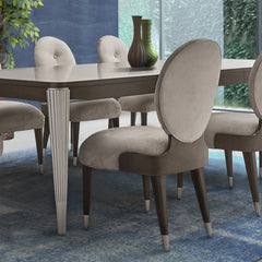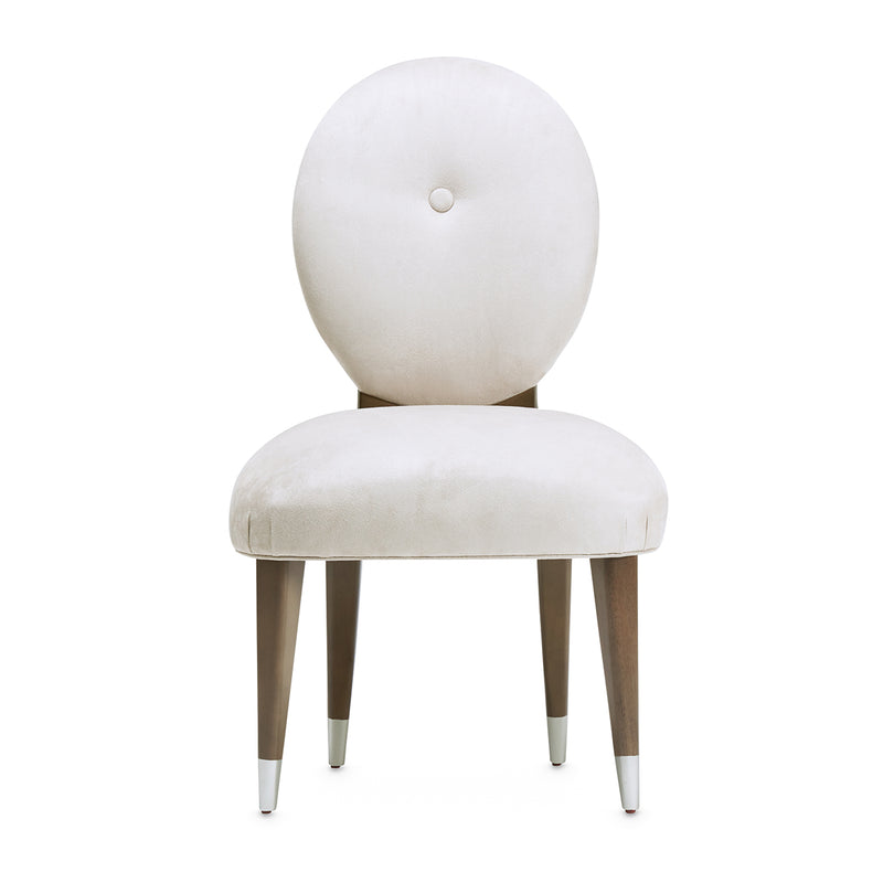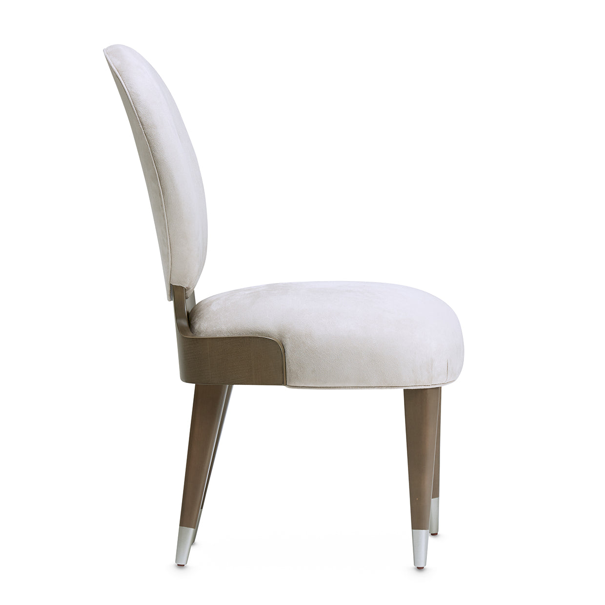 Tapered Legs with Platinum Accents: Slim legs finished with brushed platinum caps introduce a polished, modern finish.