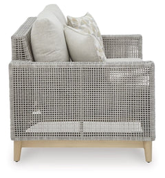 This loveseat invites your casual contemporary style outdoors. With its resin wicker in a chic neutral hue, it expertly marries refined design with durability. Breezy summer mornings and cold winter nights are made all the more comfortable with high-performance Nuvella+ fabric covering the cushion.