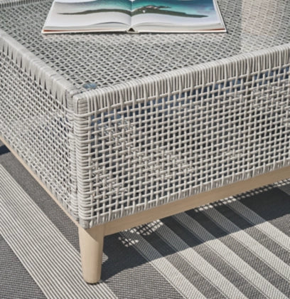 This coffee table invites your casual contemporary style outdoors. With its resin wicker in a chic neutral hue, it expertly marries refined design with durability. Breezy summer mornings and cold winter nights are made all the more enjoyable with a glass tabletop on hand to hold beverages, snacks and your latest poolside read.