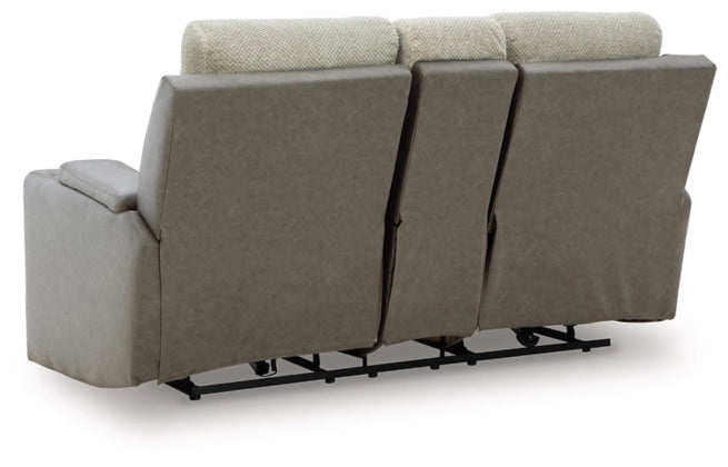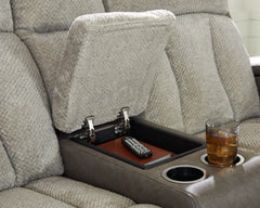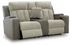 Stately Check - Sisal - Power Reclining Loveseat With Console / Adj Headrest