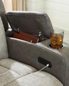 Refined relaxation, reimagined for the modern home. This power reclining sofa combines premium comfort with smart features like built-in storage arms, wireless charging and a drop-down table. One-touch reclining and adjustable headrests let you find your perfect position, while luxurious heat and massage functions melt away the day's stress. And for an added dose of style, it's wrapped in a two-tone upholstery that pairs soft textured fabric with coordinating faux leather.