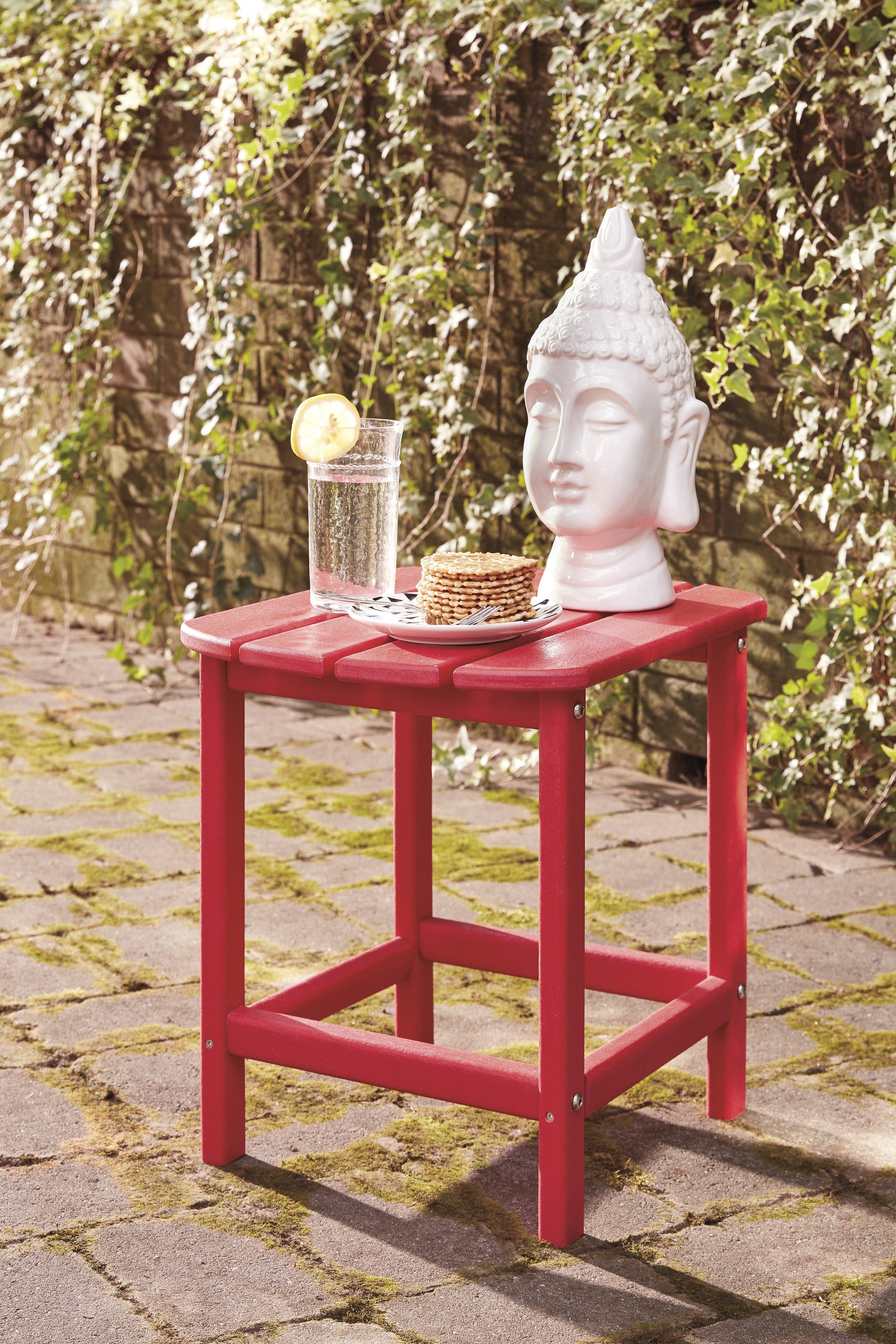 Add cottage-quaint charm to your outdoor oasis with this outdoor end table in red. Made of MEGA TUFF™ high-density polyethylene material, it’s sure to weather the seasons beautifully. Designed to shed rainwater, the table’s slatted top with gently rounded corners provides exceptional form and function. With a variety of styles and materials, accent tables can provide storage in a living room or give guests a spot to rest their drinks. They can add subtle drama to your decor by presenting a place for artwork, a lamp or a plant. We have a wide selection of coffee tables, console tables and occasional tables, from rustic farmhouse designs to modern openwork styles. They come in a multitude of sizes, too, so you will find one that fits just where you need it.