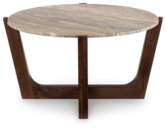 Not only does the stunning Tanidore coffee table enhance the aesthetic of your home, but it also provides practicality and functionality. Crafted with a mango wood frame and natural marble top, its solid construction and durable materials ensure years of reliable use. It's the perfect blend of contemporary style and timeless elegance.