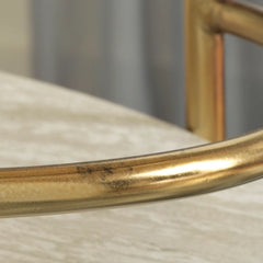 Part furniture, part art form, this luxurious bar cart is stone cold perfection. Light goldtone metal frames the faux travertine shelves to create a curated look. A stunning showcase of minimalism taken to the max, this decidedly contemporary piece will have you fixated on a modern point of view.