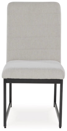 Sleek in its simplicity, this upholstered dining chair takes a relaxed approach to refinement. The mixed-material design brings a trendy urban-chic feel to dinner time. And with a cushioned seat upholstered in a light beige fabric, you stay comfortable as you dine.