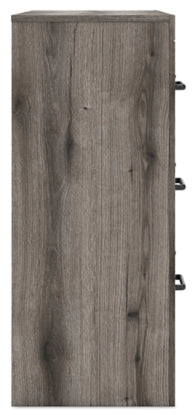 Combining a casual aesthetic with functional flair, this dresser suits styles from rustic to industrial. Its smooth-gliding drawers store everyday essentials with ease, from clothes to bed linens. Elongated drawer pulls in a dark hue polish off the look, harmonizing beautifully with the weathered gray wood grain.