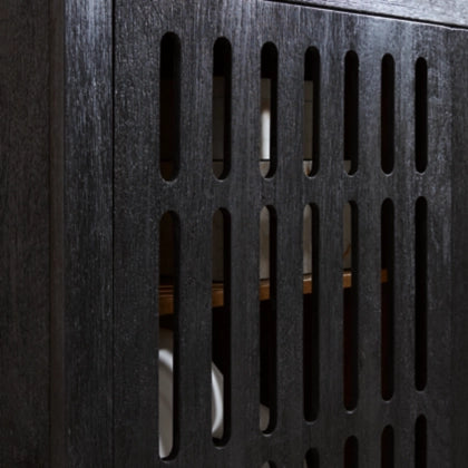 This accent cabinet showcases high-end style with a captivating design. A cleverly placed cutout offers a sneak peek inside, making it a versatile choice for use as a buffet, console or media cabinet. Contemporary and casual, this piece epitomizes laid-back luxury.