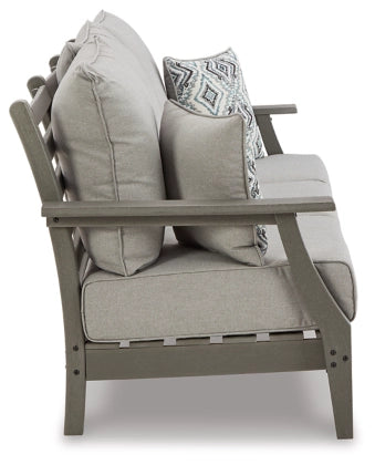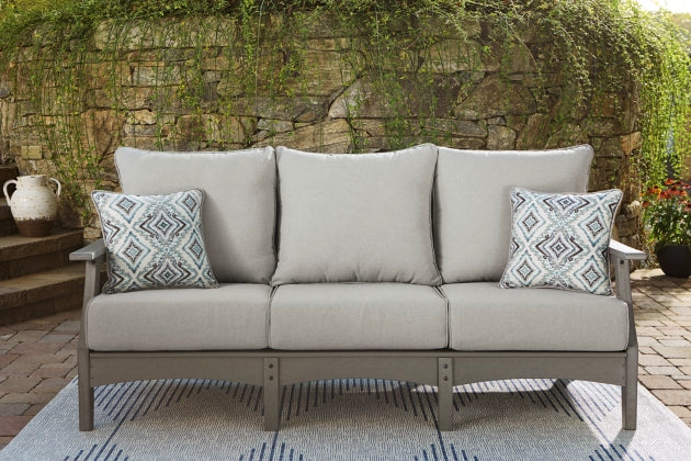 It’s the dawn of a new day for gray. Embrace the style trend with this outdoor sofa. Crafted of HDPE material that combines the exceptional durability and weather resistance you need with the “wood look” you love, this comfortably cushioned sofa takes outdoor living to a whole new level. Rest assured, the thick seat and back cushions and throw pillows are wrapped in our exclusive Nuvella® high-performance fabric that’s fade resistant, stain resistant and a breeze to clean.