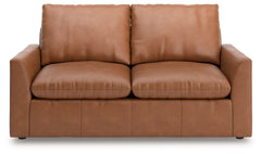 Bring home comfort rich in character with this loveseat. Oversized plush feather-fiber cushions keep things cozy for enjoying family time, hanging with friends or catching up on the latest TV. Its modular design easily adapts to your space, while the neutral hue pairs with a variety of color palettes. And with a combination of top grain leather and faux leather, this sleek loveseat embodies approachable-yet-luxe design.