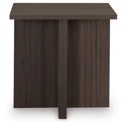 With its geometric allure, this table set serves as a striking focal point for casual or refined settings. Its clean lines and rich dark brown wood-grain finish create a warm and inviting atmosphere of natural beauty. Seamlessly blending with unpretentious lifestyle interiors, these tables offer distinctiveness and functionality.